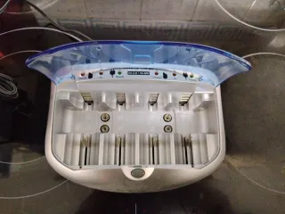Cargador universal para diferentes tipos de pilas. Permite cargar pilas recargables Ni-Cd y Ni-MH. Capacidad hasta 6 pilas - Compatible con pilas AA, AAA, C, D y 9V. - Indicadores LED para estado de carga. - Dos canales de carga independientes (CH1 y CH2).