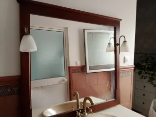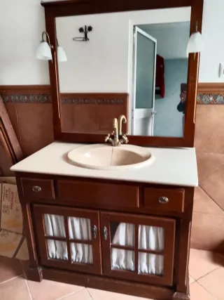 Mueble baño madera y espejo mide 1 metros x 57