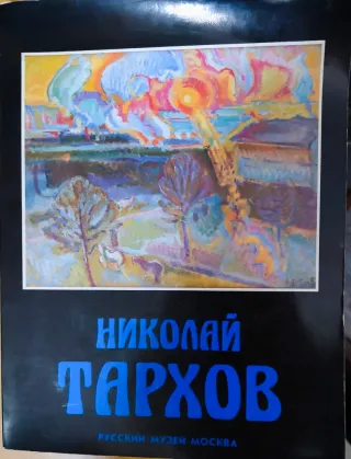 Póster de la exposición Nikolai Tarhov del Museo Ruso de Moscú. Presenta una obra de arte vibrante y colorida. - Título: Nikolai Tarhov - Institución: Museo Ruso Moscú