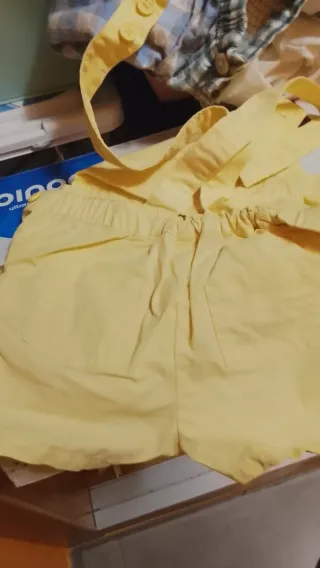 Precioso pichi de color amarillo, ideal para combinar. - Detalle de botones en la parte superior. - Cintura elástica con cordón ajustable. - Bolsillos laterales.