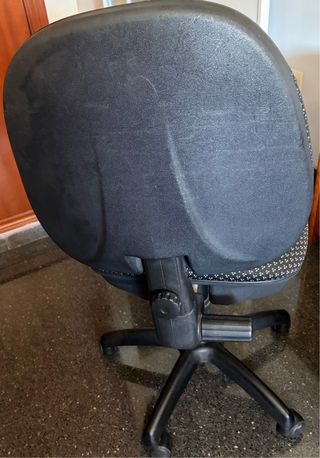 Silla de oficina con un diseño moderno y funcional. - Base de plástico con ruedas. - Respaldo ergonómico.