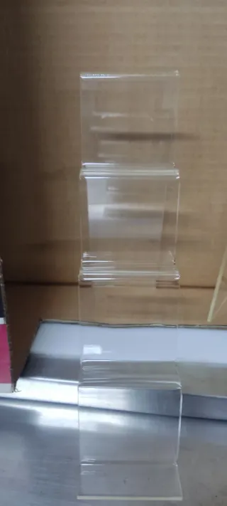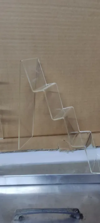 2 Expositor de sobremesa fabricado en acrílico transparente. Su diseño escalonado permite organizar y exhibir diversos artículos de forma ordenada. - Material: Acrílico. - Color: Transparente. - Diseño: Escalonado.