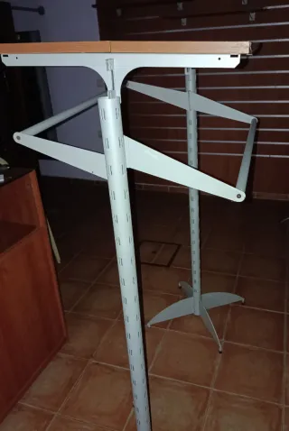 Mueble expositor portátil, ideal para tiendas de ropa o eventos. - Estructura metálica resistente. - Diseño plegable para fácil transporte. - Altura ajustable.
