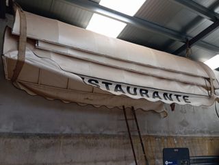 Se venden tres toldos de lona, ideales para negocios o terrazas. Cada toldo mide 5 metros de largo por 1,5 metros de ancho. - Lona resistente. - Medidas: 5m x 1,5m. - Precio por unidad: 100€.