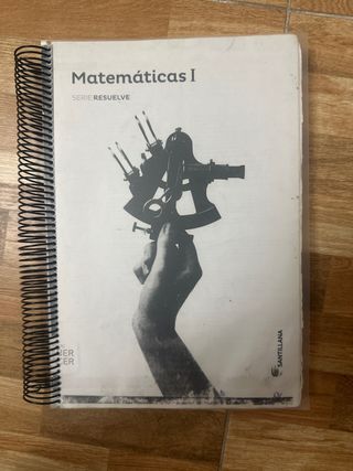 Libro de texto de Matemáticas I de la editorial Santillana. - Serie Resuelve. - Cubierta con imagen de un sextante.