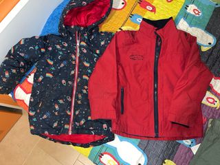 Conjunto de abrigo y cortavientos para niño de 6 años en perfecto estado - Abrigo azul marino con estampado de cohetes y planetas. Marca Name it - Cortavientos rojo con detalles en azul marino. Marca Mayoral Los dos por 8€!!