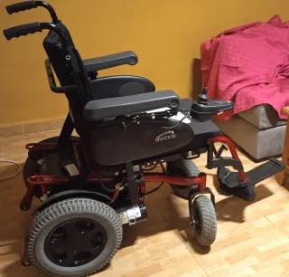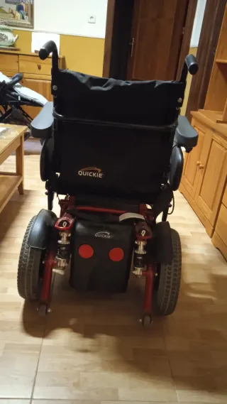 Silla de ruedas eléctrica marca Quickie y cargador de la silla en buen estado.Con 2 semanas de uso. Baterias nuevas.Lista para usar. - Color negro y rojo. - Ruedas traseras grandes. - Reposabrazos.