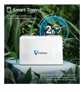 Concentrador de oxígeno portátil de la marca VARON, diseñado para facilitar la respiración y mejorar la calidad de vida. Su diseño es ligero y compacto. - Concentración de oxígeno: 30% - Flujo: 3L - Portátil - Batería recargable - Flujo continuo - Bajo nivel de ruido
