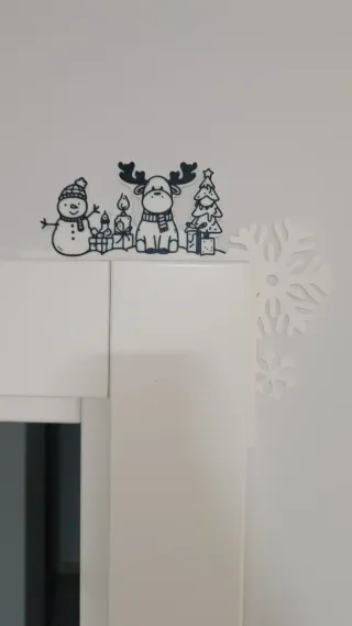 Adorno decorativo para esquinas, ideal para puertas, TV ,ventanas ,muebles, Ect. - Diseño navideño con muñeco de nieve, reno, velas y árbol.
