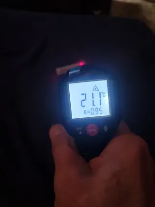 Termómetro infrarrojo digital con pantalla LCD. - Rango de medición: -30°C a 200°C. - Emisividad ajustable: 0.95. - Unidades seleccionables: °C / °F. - Función de retención de datos (Hold). - Indicador de batería baja.