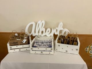 Letras para decoración de comunión nombre Alberto.Trae también una paloma. Un sólo uso. No hago envíos por el tamaño de la caja y lo delicado que es. Sólo venta en persona.