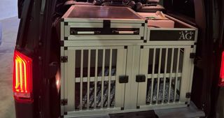 Vendo una práctica caja de transporte para perros de la marca AXESDOG, para Mercedes clase V, ideal para dos mascotas. UN SOLO USO. - Estructura de aluminio. - Dos compartimentos independientes. - Incluye bandeja extraíble y deposito de agua.