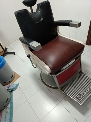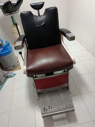 Sillón de peluquero hidráulico Euroconfort en buen estado. Ideal para barberías o salones de belleza. - Marca: Euroconfort - Modelo: 150 - Color marrón y rojo - Incluye reposapiés