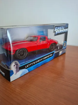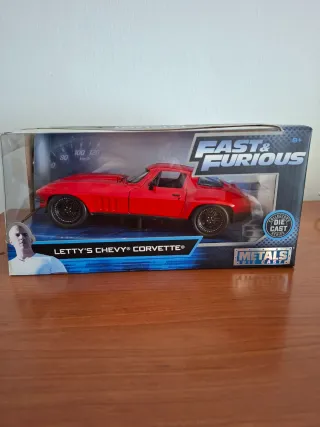 Réplica del coche Chevy Corvette de Letty de la saga Fast & Furious. - Modelo a escala. - Color rojo. - Colección Metals Die Cast.