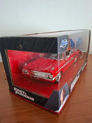 Réplica del icónico coche de Dom de la saga Fast & Furious. - Modelo: Dom's Chevy Impala. - Marca: Jada Toys. - Material: Die-Cast (metal). - Color: Rojo.