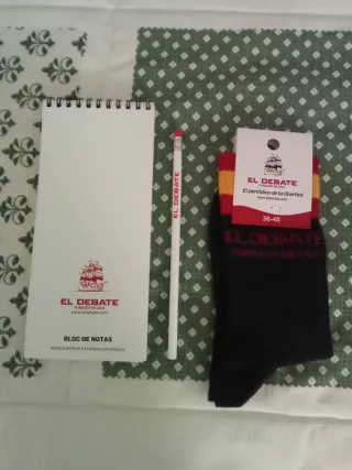 Merchandising El Debate: cuaderno, lápiz, calcetin