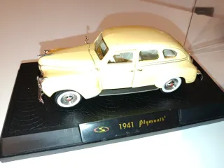 Réplica detallada del modelo 1941 Plymouth de la marca Road Signature. - Color amarillo. - Base expositora negra con detalles. - Réplica a escala.