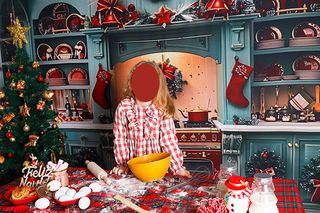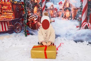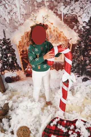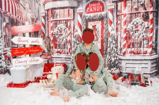 Telón de fondo para fotografía con temática navideña y de caramelos. - Diseño de calle nevada con tienda de dulces. Solo Pared, mide 300x240 es de tela, puede tener algunos agujeritos de clavarlo en la pared para que no se caiga, pero no se aprecian ni mucho menos afectan a las fotos.