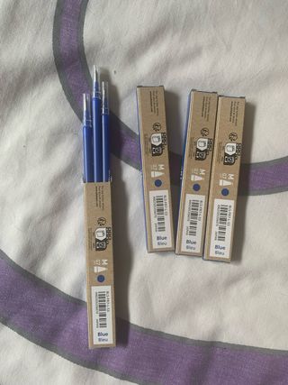 4 paquetes de recargas para bolígrafo en color azul. Pilot Frixion 0,7mm
