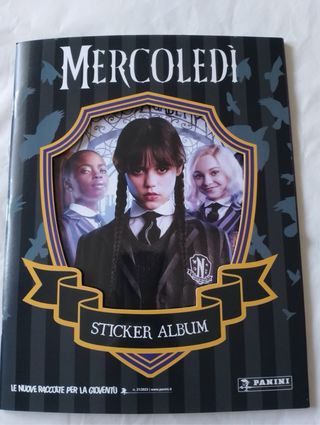 Colección de cromos de la serie Miércoles (Wednesday) de Panini. Incluye el álbum y la caja de cromos.Álbum Italiano 20, caja 40€. por separado - Diseño inspirado en la serie. - Ideal para coleccionista