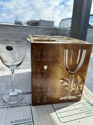 Juego de copas de cristal de Bohemia. Incluye diferentes tamaños para distintas bebidas. - Marca: Bohemia - Material: Cristal - Diseños variados de copas