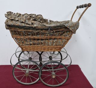 Medidas; Del suelo al manillar: 75cm Diámetro de ruedas: 28cm Capota: Largo: 58cm Ancho: 35cm Alto: 26cm Precioso cochecito para bebé antiguo, hecho de mimbre y con ruedas de metal. Está en buenas condiciones para su edad, aunque presenta señales normales de uso, ruedas bien. La parte de la tela sería para hacerle un mantenimiento. Mando video de su estado para mayor efectividad en el trato