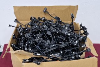 7,7 kilos, perfectas para tienda de surf o similar. 27cm cada perchas de lado a lado. Mando video de su estado para mayor efectividad en el trato - Fabricadas en plástico negro resistente. - Diseño con pinza para sujetar firmemente.