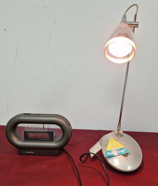PRECIO POR LOS DOS. Lampara de mesa y radio despertador digital de la marca Roadstar con un diseño ovalado moderno, hay que poner a punto la antena. Mando video de su estado para mayor efectividad en el trato - Pantalla LED digital. - Sintonizador de radio FM/AM.