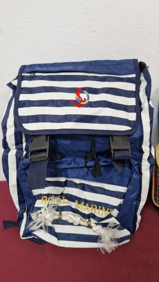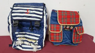 PRECIO POR LAS DOS. Ideales para la guarderia o prescilar. Se venden dos mochilas escolares, una con rayas marineras y otra con estampado de cuadros escoceses.Mando video de su estado para mayor efectividad en el trato. Alto mochila roja 32cm Alto mochula azul 40cm - Mochila azul con rayas blancas y detalle de ancla. - Mochila azul con bolsillos y solapa de cuadros escoceses rojos. - Detalle de ositos y honey bear en la mochila de cuadros. - Cuerda decorativa con remaches en la mochila de rayas.