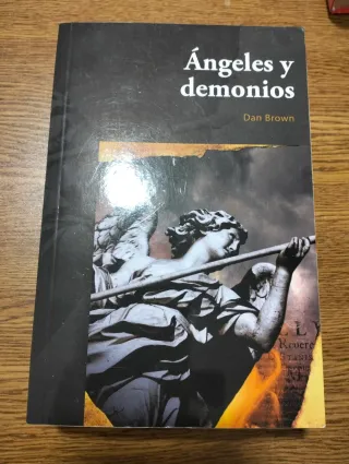 Novela Ángeles y Demonios de Dan Brown. - Portada con diseño de ángel y fuego. - Título en español.