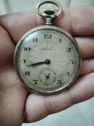 Elegante reloj de bolsillo para caballero de la marca Valdoris Un accesorio clásico con un diseño distintivo. No funciona ni se lo que le pasa - Esfera con detalles radiales. - Subesfera para los segundos. - Caja de metal plateado.
