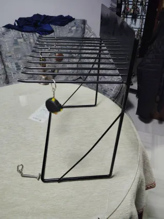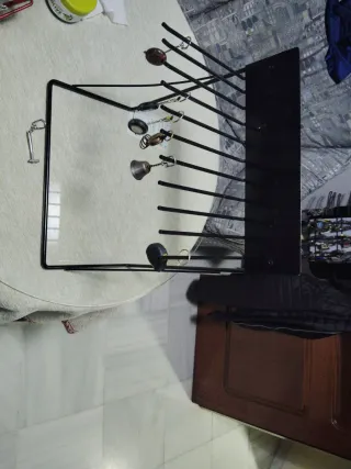 Expositor de hierro resistente, ideal para organizar y exhibir llaveros u otros objetos pequeños. - Estructura de metal negro. - Diseño con múltiples varillas para colgar. - Base estable.