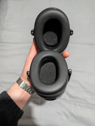 Cascos protectores de sonido en color negro. - Diseño acolchado para mayor comodidad. - Diadema ajustable. -Excelente aislante del sonido ideal para usar para leer o estudiar -Muy cómodos y ligeros , increíble cancelación del sonido -Practicamente nuevos como se puede ver en el estado de las almohadillas