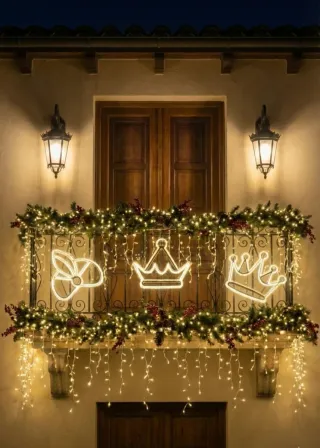Son piezas únicas hechas artesanalmente con tecnología de Impresión 3D. Son ideales para crear un ambiente real, festivo y de gran impacto visual en tu hogar o negocio. Características Clave del Set: Diseño: Tres Coronas / Coronas de Reyes Magos / Corona Real luminosas. El lote es de tres coronas de Melchor 45x22cm, Gaspar 47x51 y Baltasar 47x50). Iluminación: Luz LED cálida (color Dorado) de GRAN LUMINOSIDAD. Ubicación: Apto para Decoración Exterior e Interior. Ideales para balcón, terraza, ventana, fachada, jardín o escaparate/tienda. CORONA, CORONAS, REYES MAGOS, REY, PRÍNCIPE, REINA, LED, LUZ, LUMINOSA, DORADO, CÁLIDA, NAVID