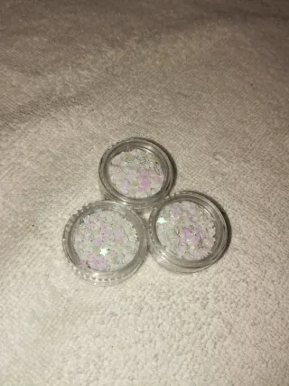 Set de decoraciones para uñas con varios diseños y acabados. - Incluye piezas metálicas y de plástico. - Diseños variados para manicuras creativas. 5 botes de letras 3 de lentejuelas ológraficas con forma de hoja, luna y estrellas