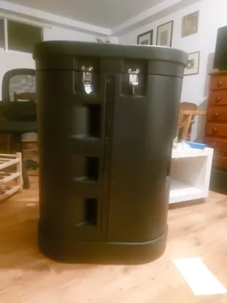 Expositor negro para publicidad o eventos. Su diseño es robusto y fácil de transportar. - Material resistente. - Cierres de seguridad.