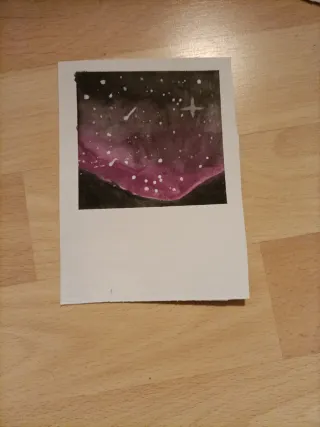 Pintura original estilo polaroid con temática de Lluvia de estrellas. Obra original - Acuarela sobre papel. - Tonos oscuros y púrpuras. - Representación de un cielo nocturno. PUEDO REALIZAR BAJO ENCARGO ACUARELAS TANTO EN LIENZO COMO EN PAPEL. ESCRÍBEME AL CHAT.
