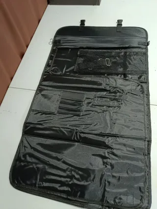 Maleta de la marca 3 Claveles en color negro. Diseñada para organizar y transportar cuchillos o utensilios de cocina . - Cierre con hebillas. - Asa de transporte. - Detalle de línea roja. Ideal para cuchillos de corte de jamón #jamon #jamonero #afinox #stellblade #java #cocina #cocinero