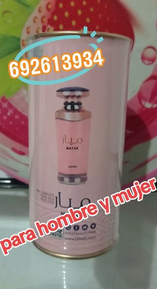 Perfume árabe Lattafa Mayar, ideal para hombre y mujer. Presentación en lata rosa con detalles. - Aroma árabe. - Marca: Lattafa. - Modelo: Mayar. - Para hombre y mujer.