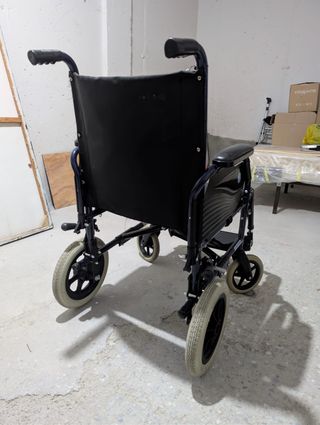 Se vende silla de ruedas plegable en perfecto estado, reposa pies, almohadillas en brazos y manetas de empuje. Marca Breezy.