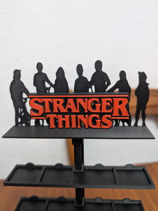 ¡Lleva tu colección de figuras de Stranger Things a otro nivel con este expositor temático! Este organizador es la solución perfecta para exhibir tus Funko Bitty Pop! de una forma ordenada y espectacular. Es una pieza de decoración imprescindible para cualquier fan de la serie que quiera mostrar su colección con estilo. El diseño cuenta con la silueta de los personajes y el icónico logo de la serie. Nota: Artículo realizado mediante impresión 3D.