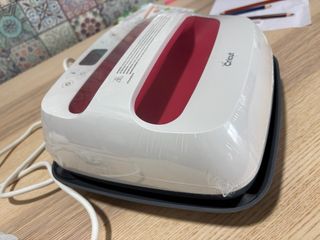 Plancha de calor Cricut en color blanco y rojo. Ideal para proyectos de manualidades y personalización de textiles. - Diseño moderno y compacto. - Superficie de calentamiento uniforme.