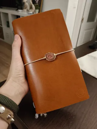 Cuaderno de viaje tamaño jumbo, ideal para regalar. Pieza única, personalizable, a estrenar. - Cubierta de cuero de vaquetilla color avellana. Curtido vegetal. - Cierre con goma elástica (se puede cambiar el color de la misma) - Detalle decorativo de ágata en la goma (color a elegir). Recargable, incluye cinco cuadernos (tres en blanco y dos punteados) de 21 x 11 cm, inserto de plástico con bolsillo y espacio para tarjetas y bolsa de algodón para guardarlo. Cuaderno de viaje de cuero, pátina, cuaderno de bitácora, aventura, diario de viaje artesanal, cuaderno artesanal, cuaderno de cuero, hecho a mano, handmade, personalizable, g