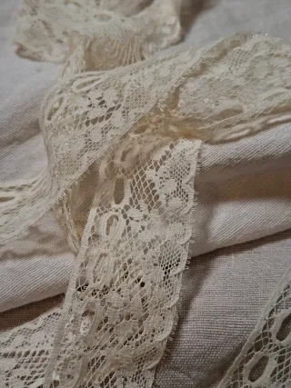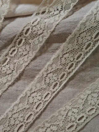 Rollo de encaje en color beige, ideal para manualidades y decoración. - Longitud: 10 metros. - Diseño delicado con motivos florales y calados.