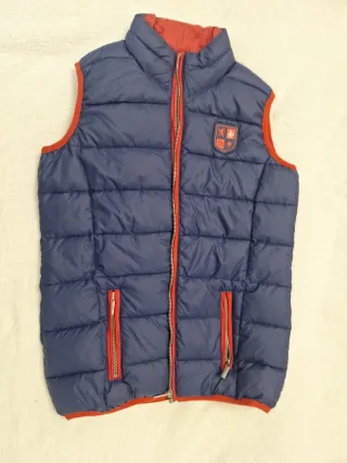 Chaleco acolchado VALE 4, ideal para añadir una capa extra de abrigo. - Color azul marino. - Ribete y cremallera en color rojo. - Escudo bordado en el pecho. - Dos bolsillos frontales con cremallera.