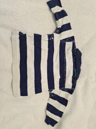 Jersey de rayas azules y grises para niño de 2 años. - Marca Tommy Hilfiger. - Diseño de rayas verticales. - Cuello redondo. - Cierre de botones en el hombro.