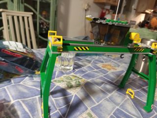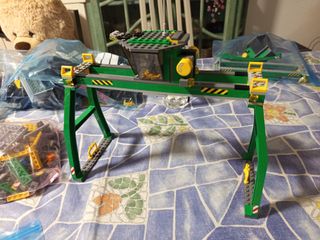 Grúa de puerto de construcción Lego. - Estructura principal en color verde. - Cabina de control con detalles amarillos. - Incluye gancho para carga.