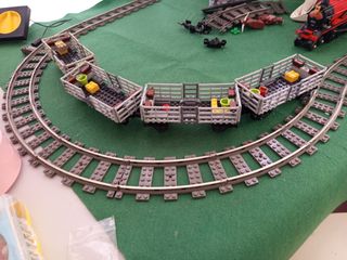 100% completo y original del set Set de vías y accesorios para trenes Lego. - Vías de tren grises. - Elementos de construcción Lego. - Incluye piezas de grúa y señalización.