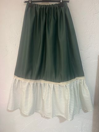 Falda larga verde con delantal a rayas
