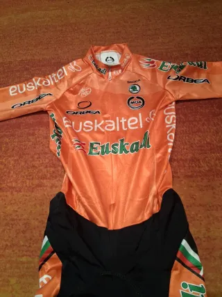 Mono de ciclismo del equipo Euskaltel Euskadi. Talla 1..xs la más pequeña de adultos Moa Nuevo sin edtrenar - Color naranja. - Diseño con logos del equipo y patrocinadores. - Talla XS.